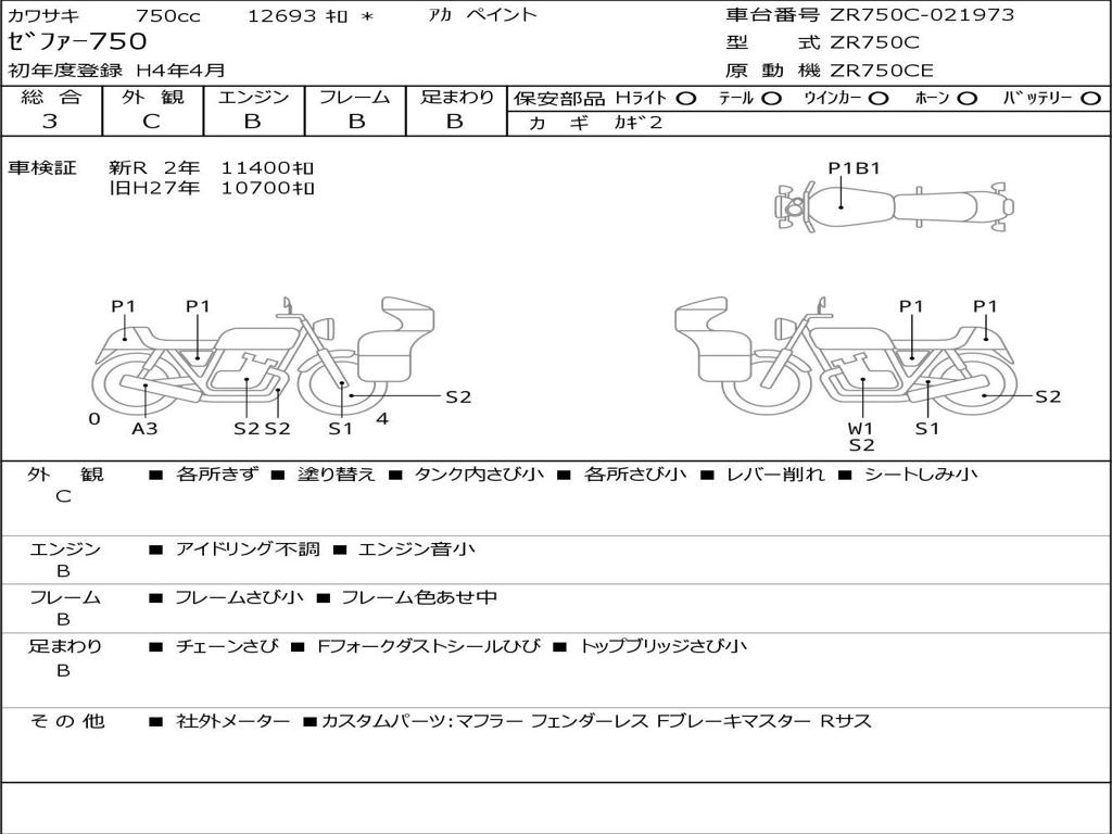 | Номер рамы / VIN | ZR750C-021973 |