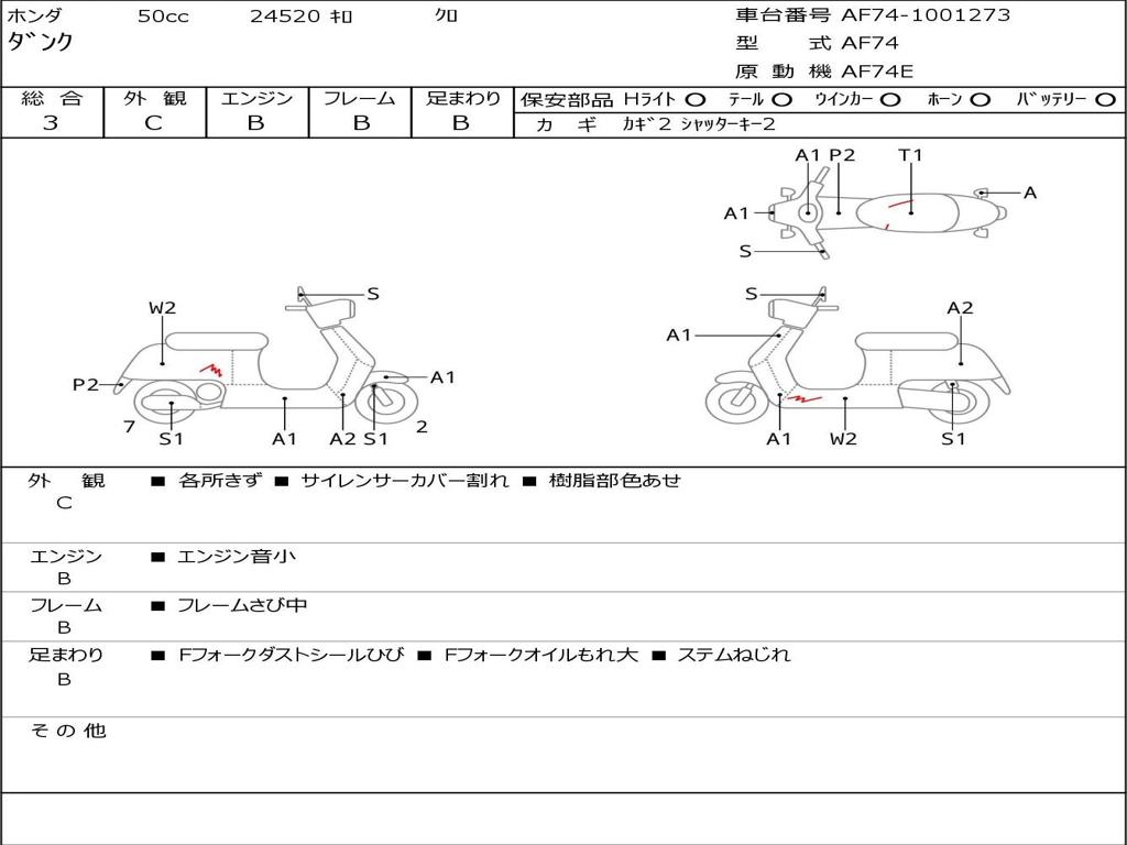| Номер рамы / VIN | AF74-1001273 |