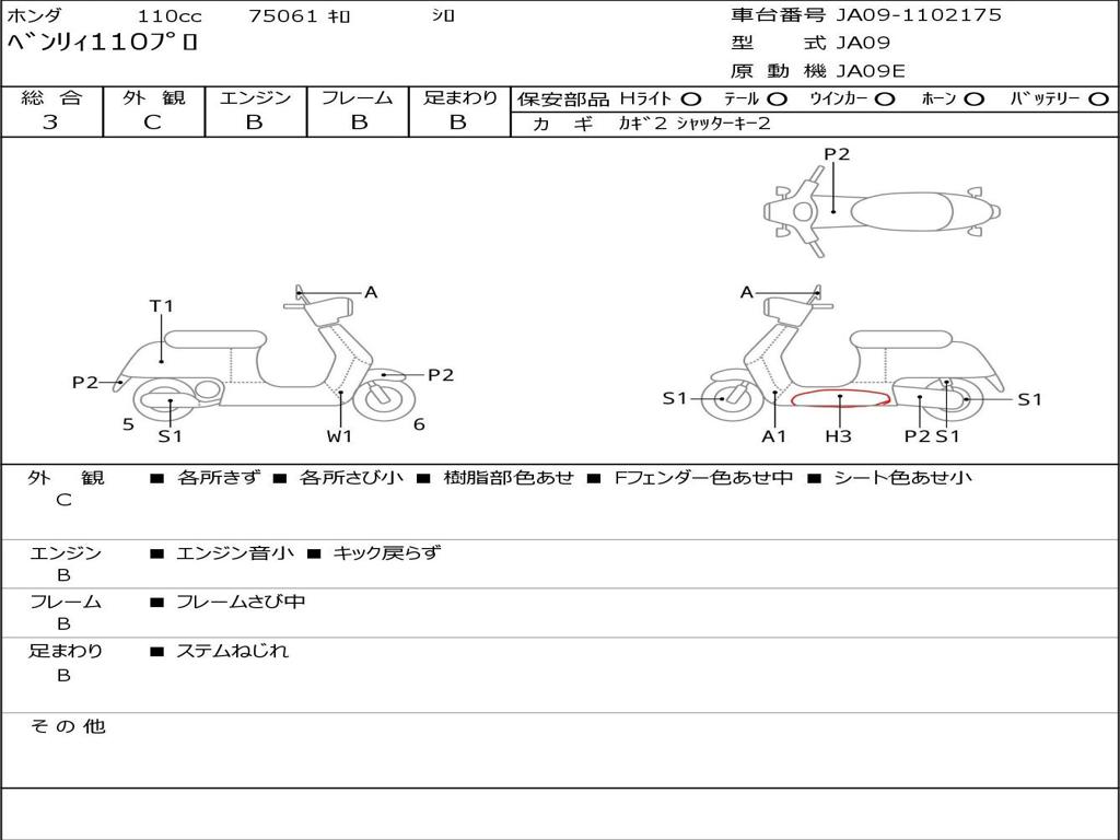 | Номер рамы / VIN | JA09-1102175 |