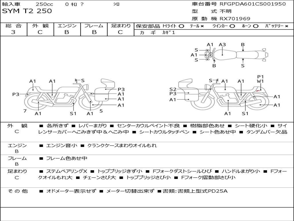 | Номер рамы / VIN | RFGPDA601CS001950 |