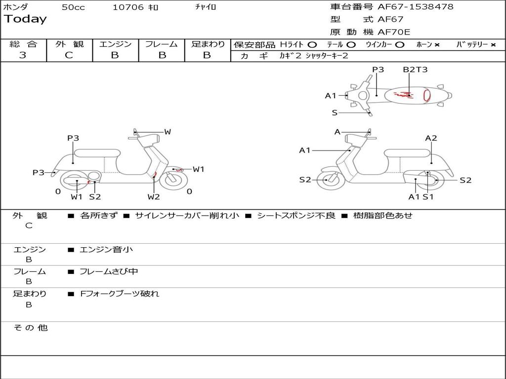 | Номер рамы / VIN | AF67-1538478 |