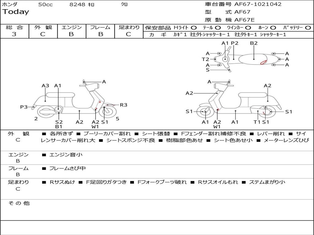 | Номер рамы / VIN | AF67-1021042 |