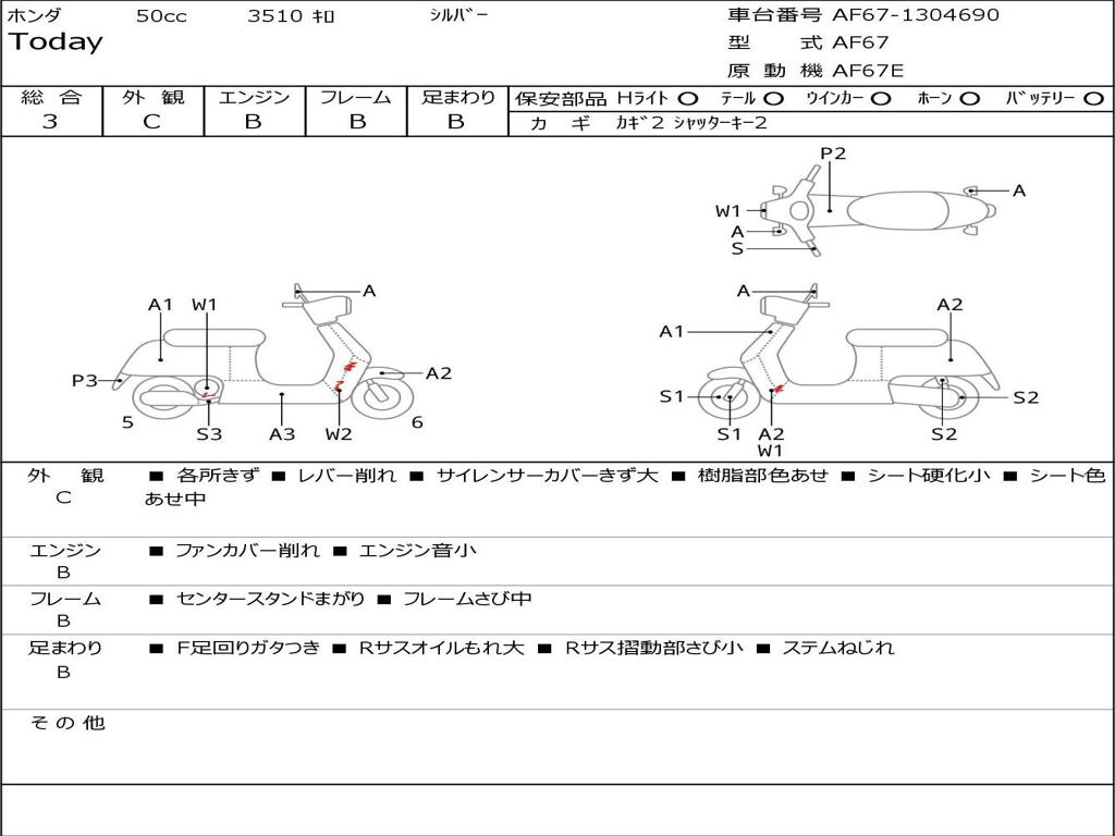 | Номер рамы / VIN | AF67-1304690 |