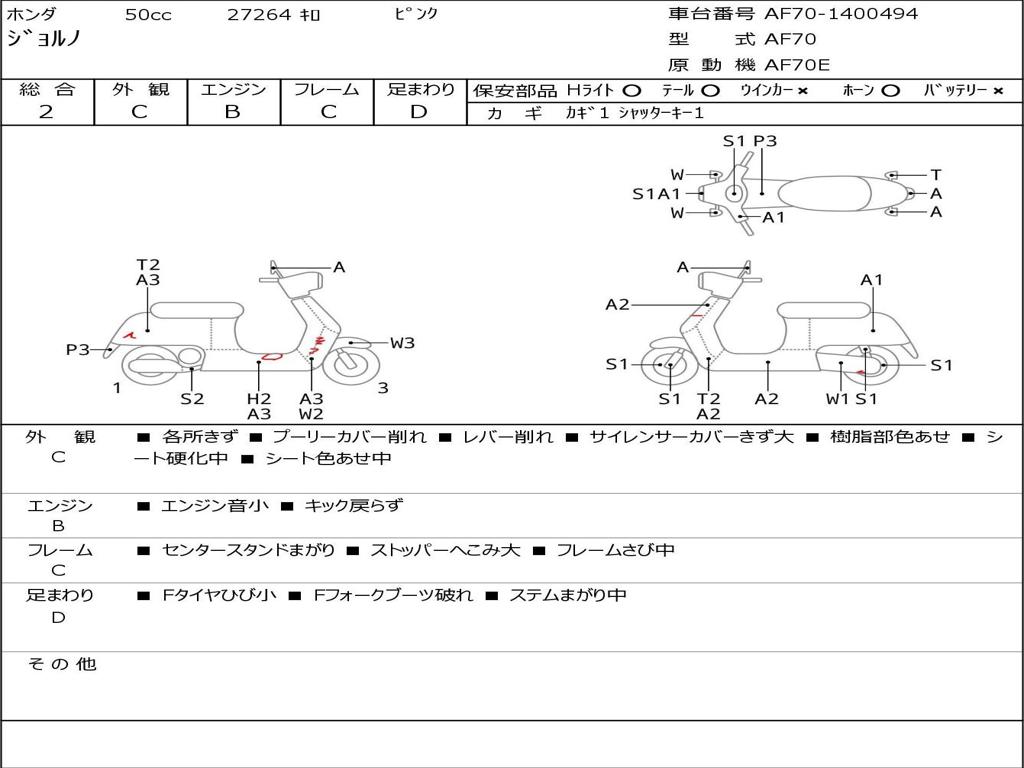 | Номер рамы / VIN | AF70-1400494 |