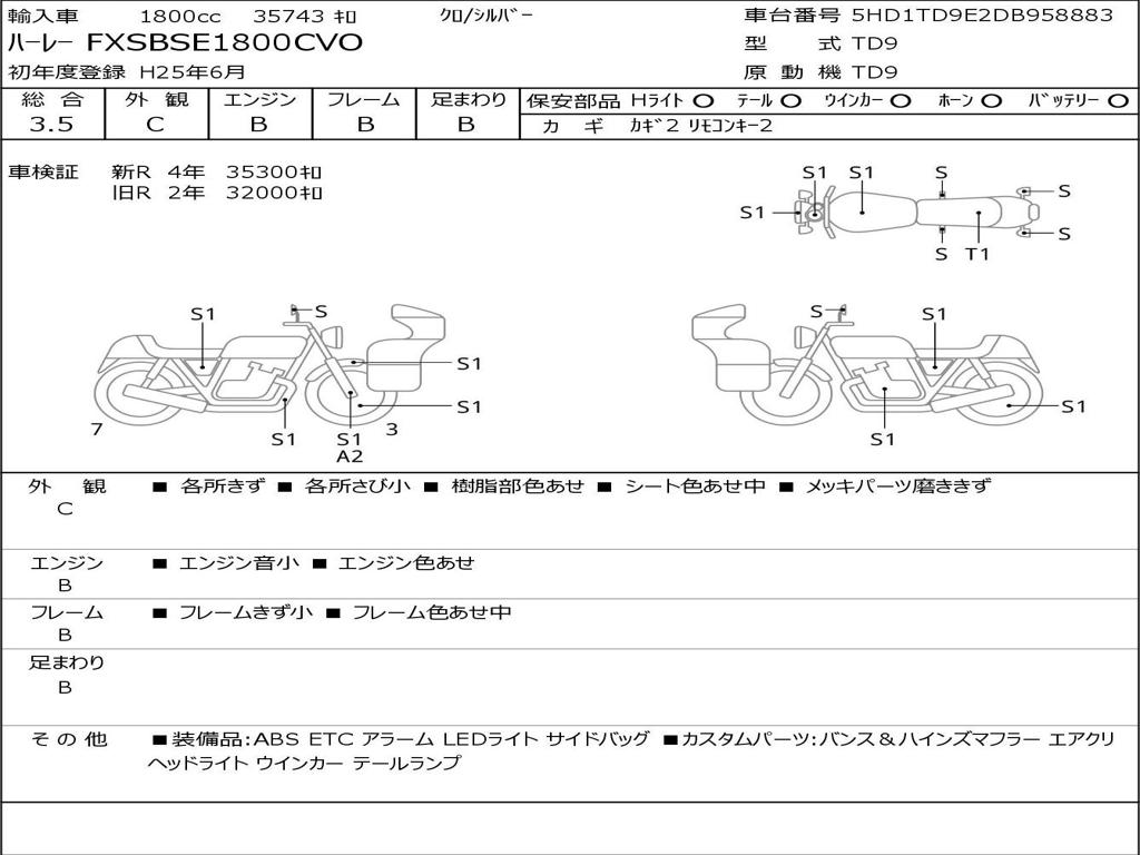 | Номер рамы / VIN | 5HD1TD9E2DB958883 |