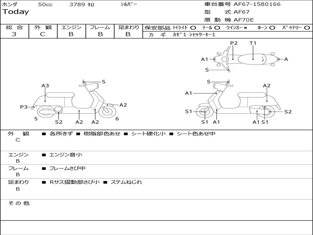 | Номер рамы / VIN | AF67-1580166 |
