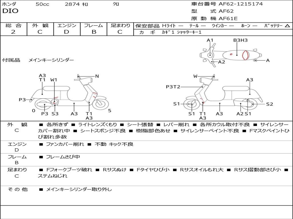| Номер рамы / VIN | AF62-1215174 |