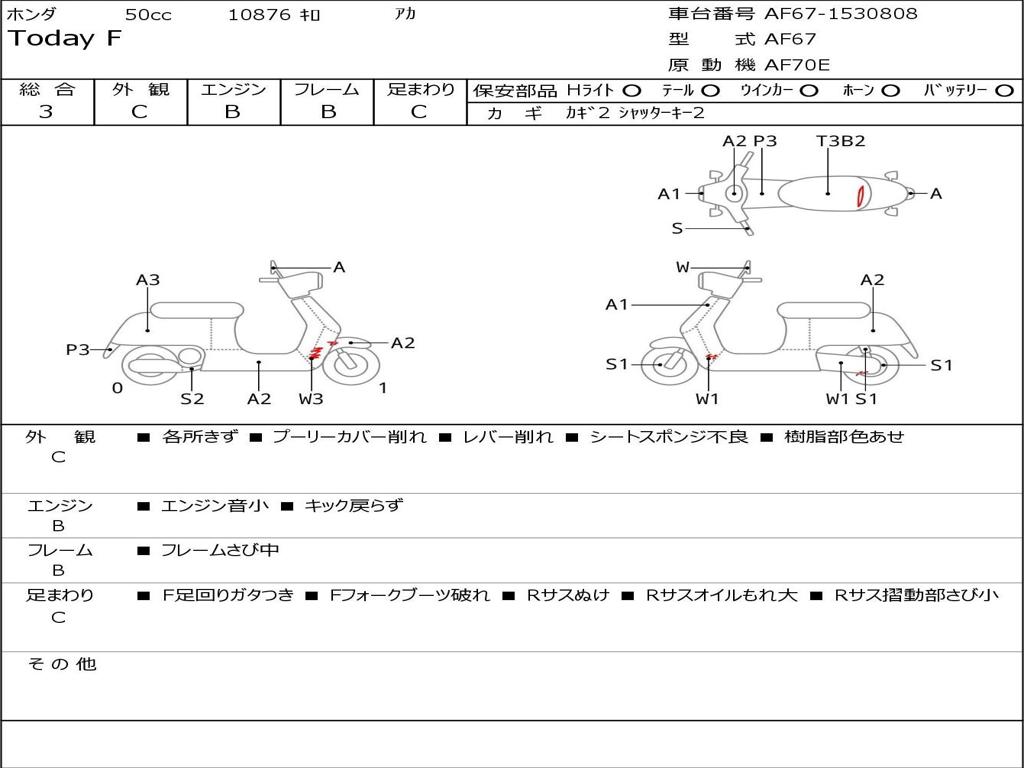 | Номер рамы / VIN | AF67-1530808 |