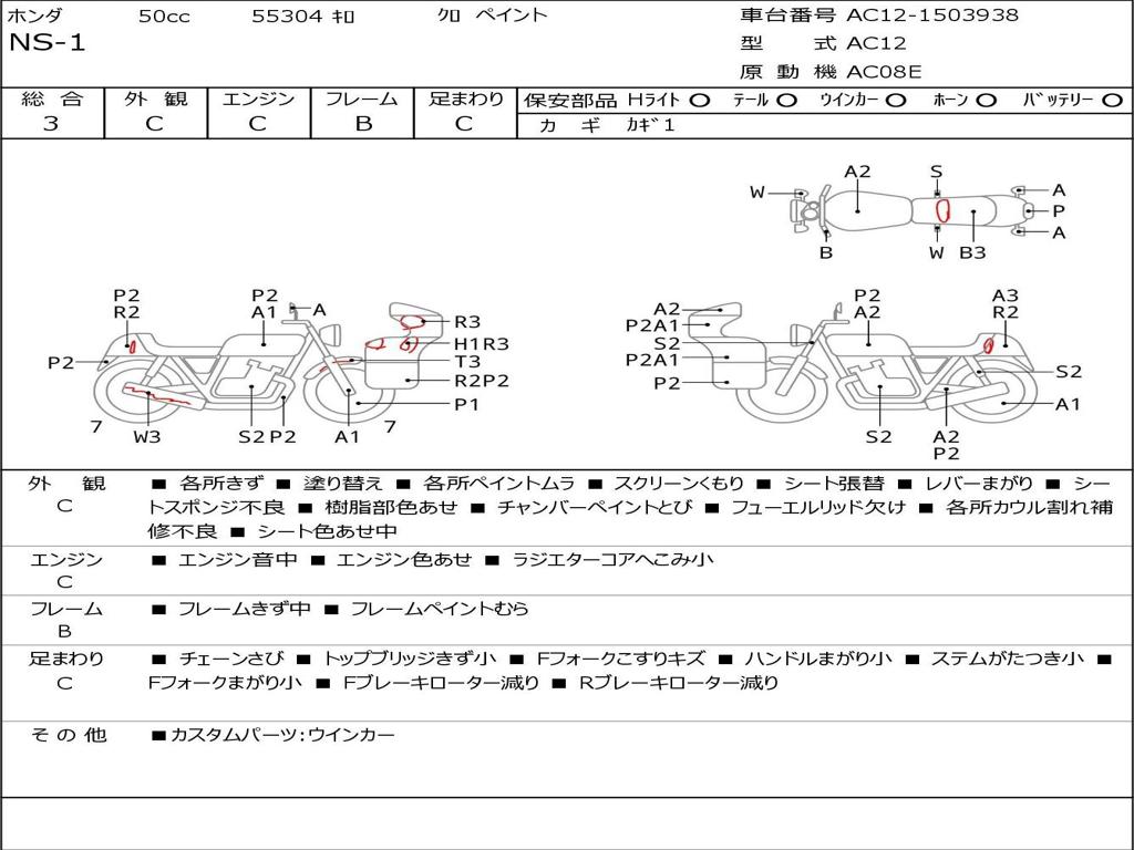 | Номер рамы / VIN | AC12-1503938 |
