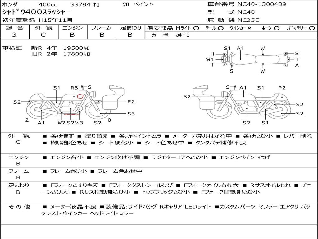 | Номер рамы / VIN | NC40-1300439 |