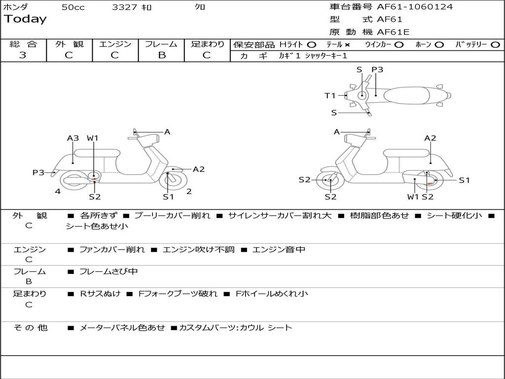 | Номер рамы / VIN | AF61-1060124 |