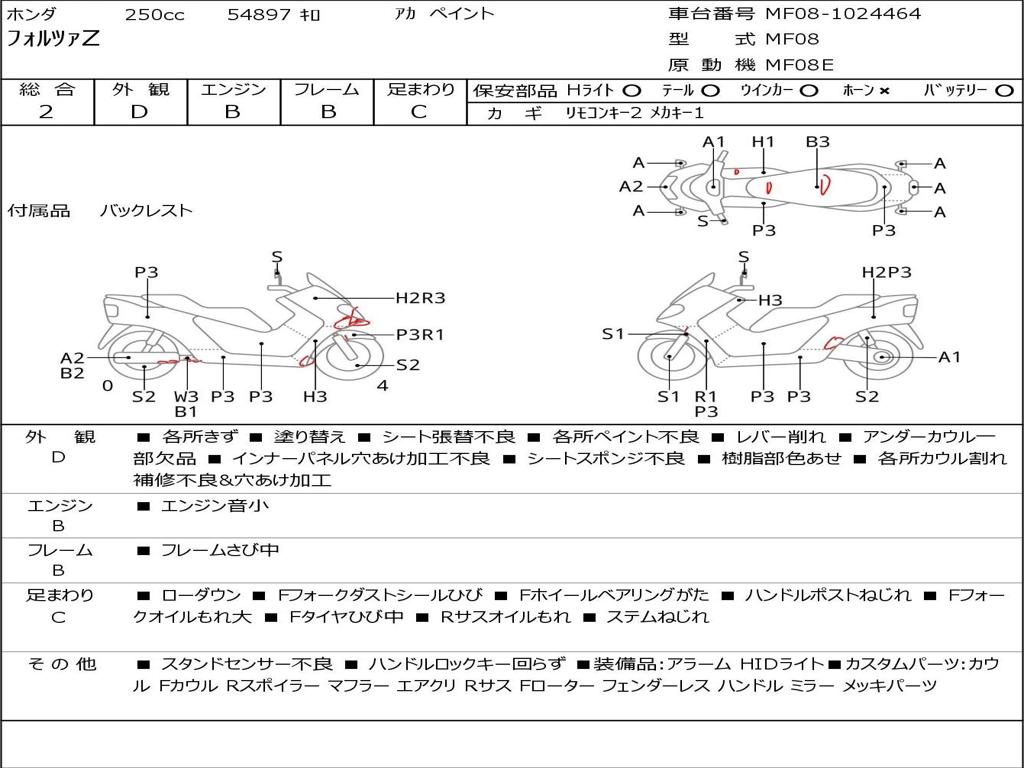 | Номер рамы / VIN | MF08-1024464 |