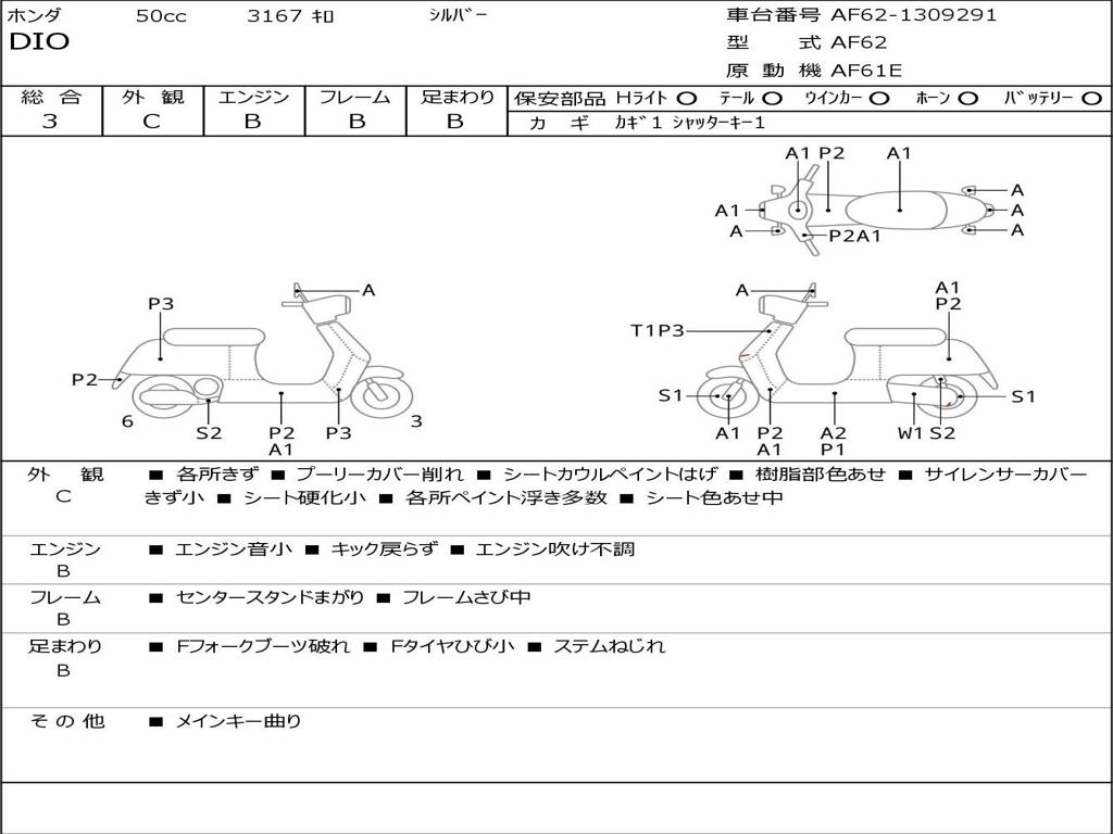 | Номер рамы / VIN | AF62-1309291 |