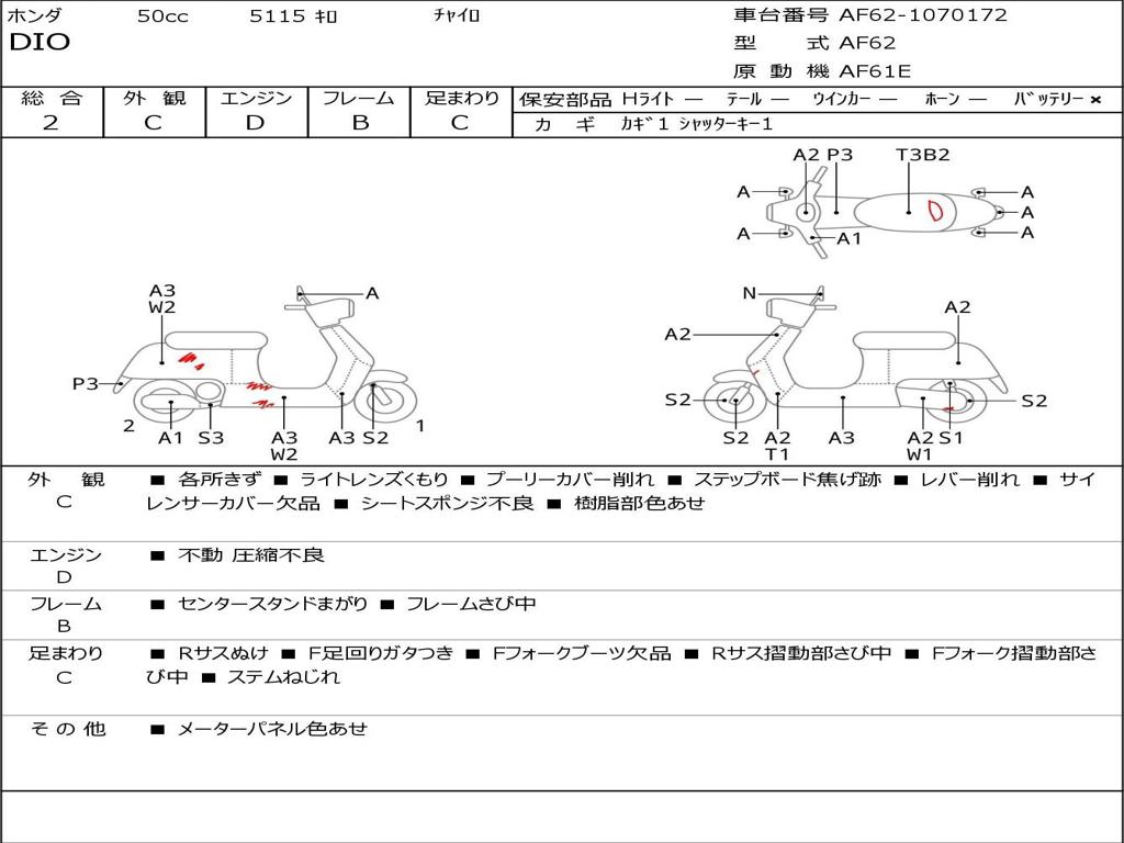| Номер рамы / VIN | AF62-1070172 |