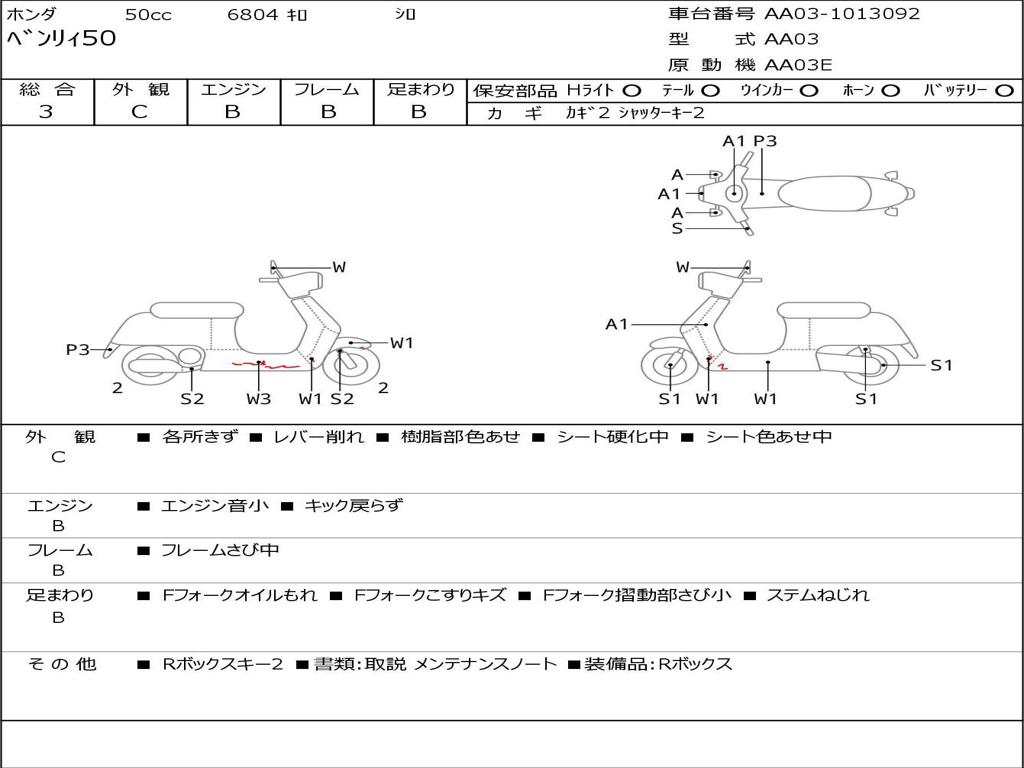 | Номер рамы / VIN | AA03-1013092 |