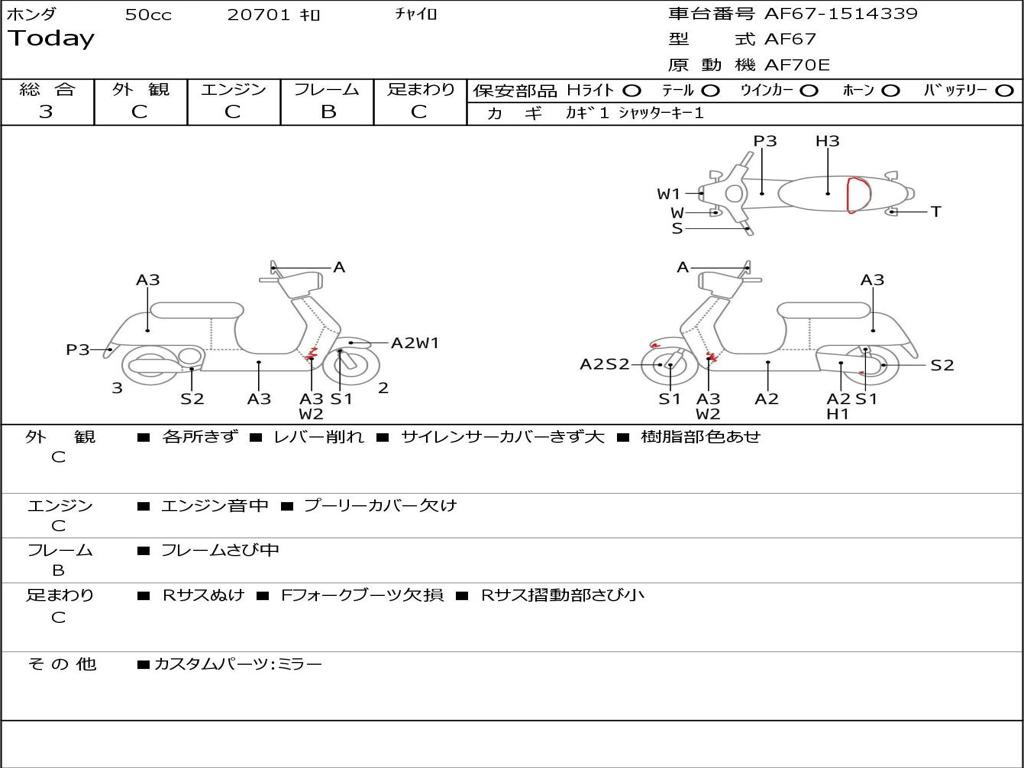 | Номер рамы / VIN | AF67-1514339 |