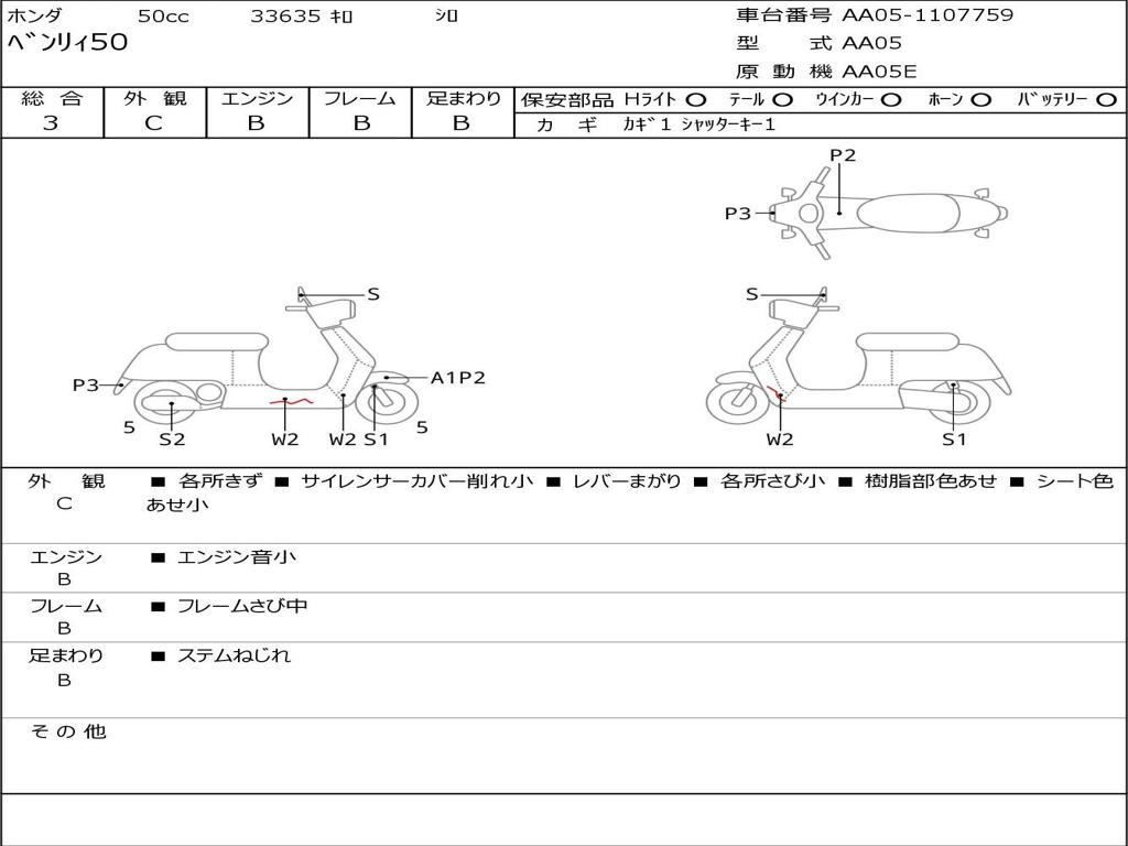| Номер рамы / VIN | AA05-1107759 |