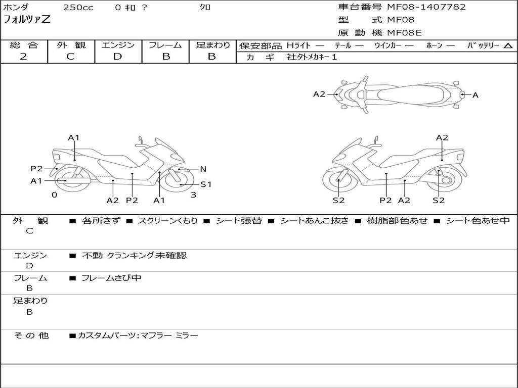 | Номер рамы / VIN | MF08-1407782 |