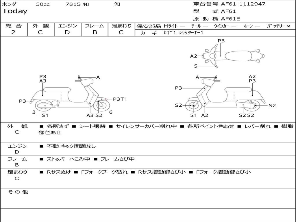 | Номер рамы / VIN | AF61-1112947 |