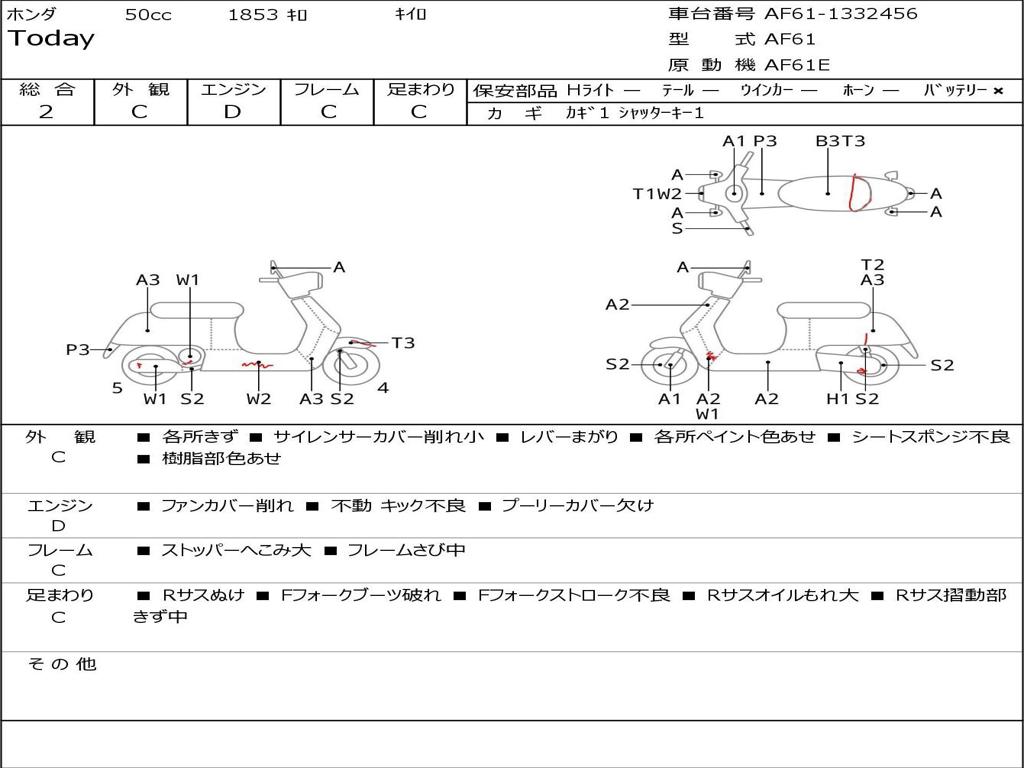 | Номер рамы / VIN | AF61-1332456 |