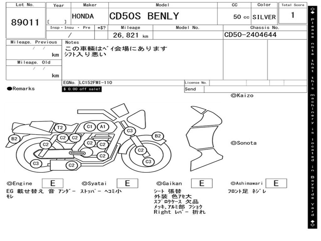 | Номер рамы / VIN | CD50-2404644 |
