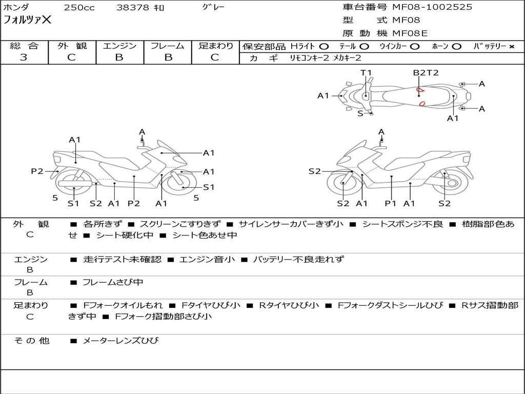 | Номер рамы / VIN | MF08-1002525 |