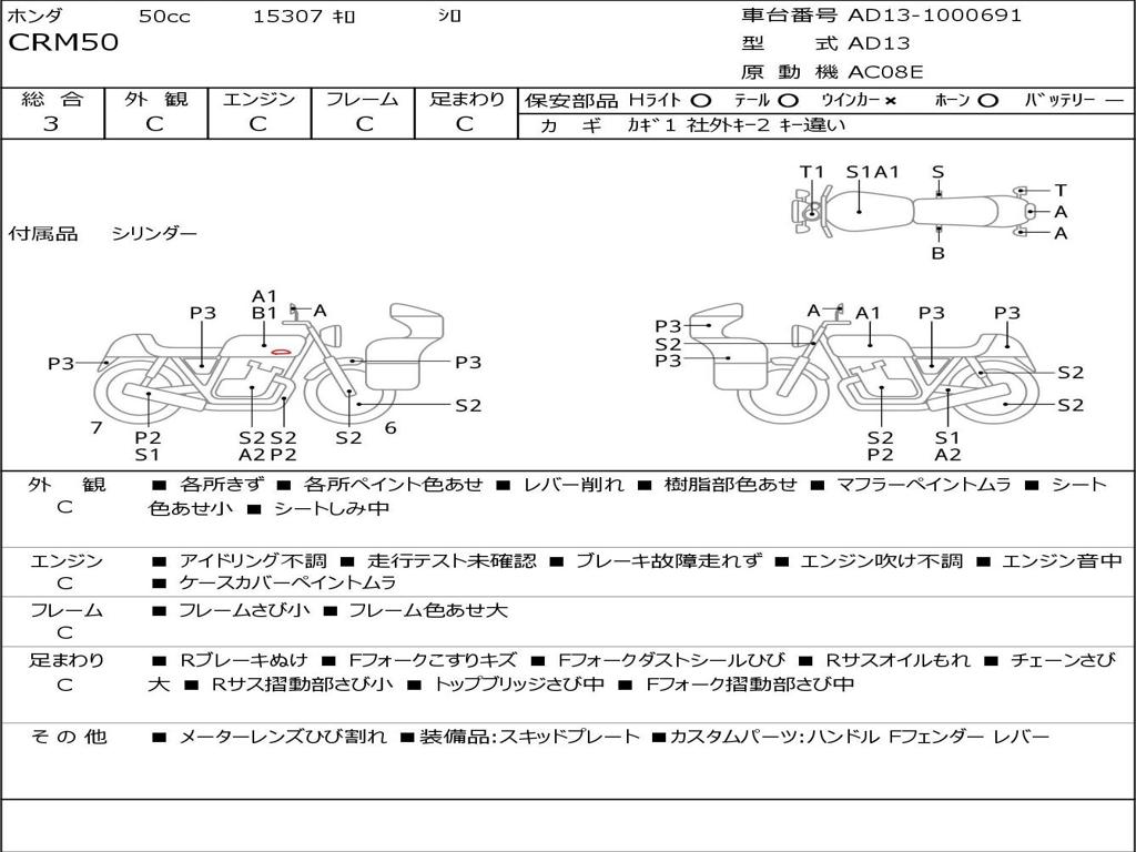 | Номер рамы / VIN | AD13-1000691 |