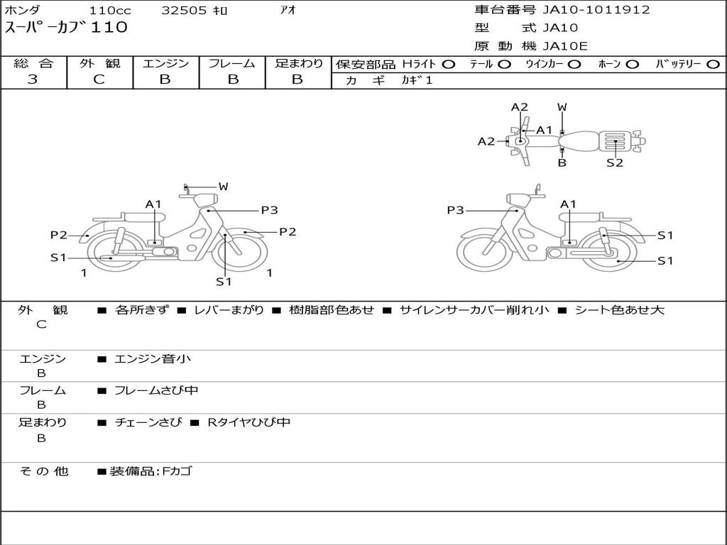 | Номер рамы / VIN | JA10-1011912 |