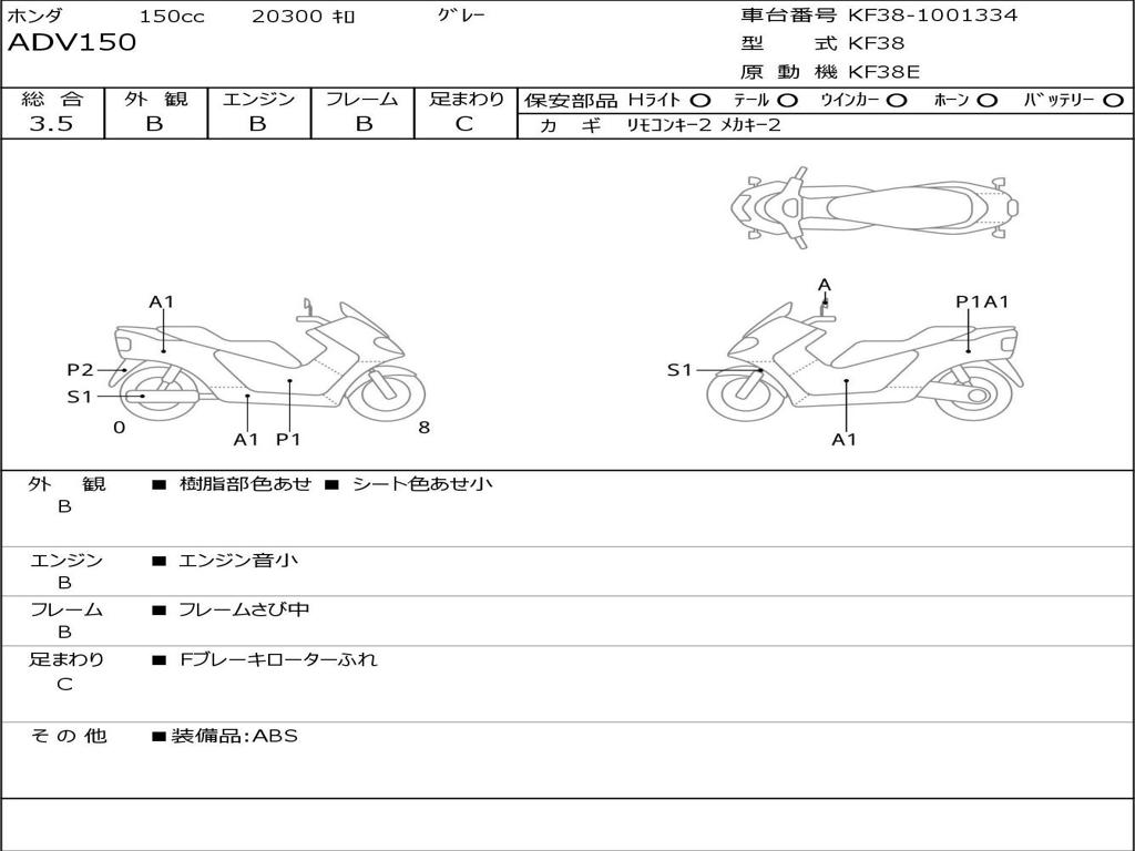 | Номер рамы / VIN | KF38-1001334 |
