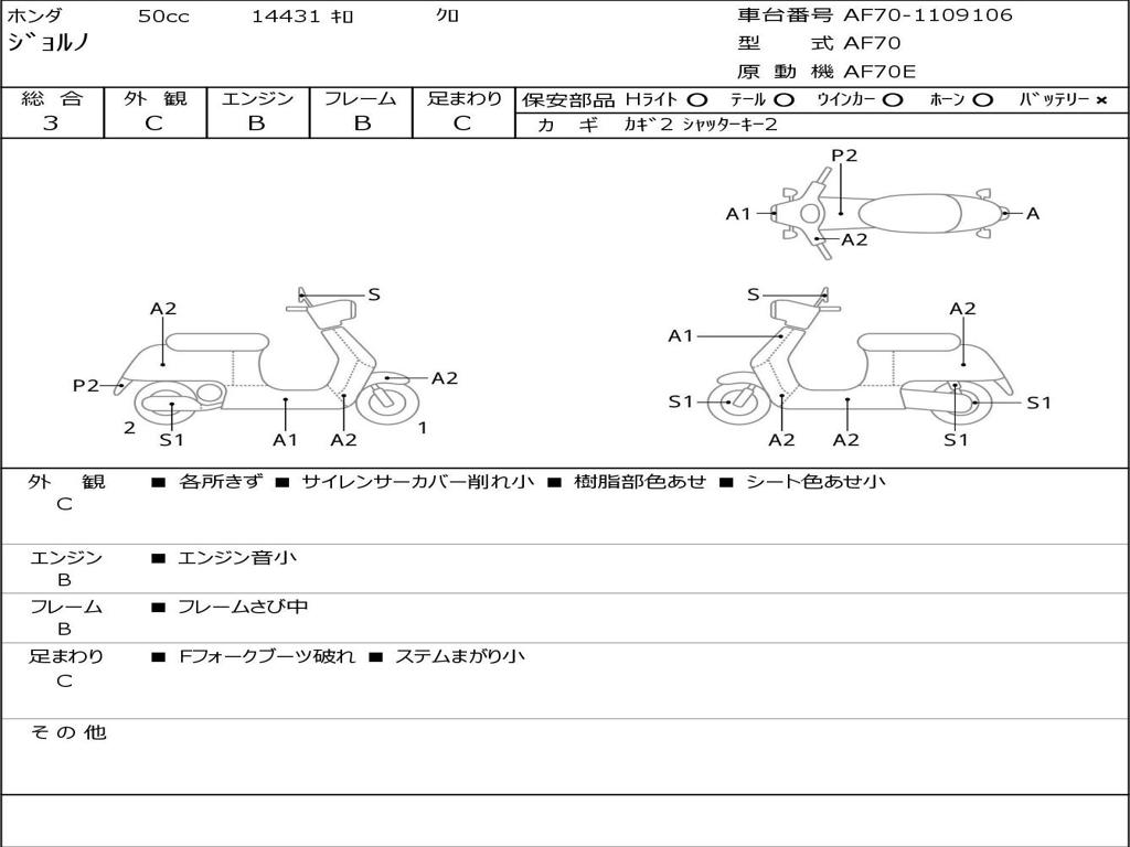 | Номер рамы / VIN | AF70-1109106 |