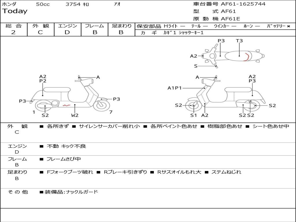 | Номер рамы / VIN | AF61-1625744 |