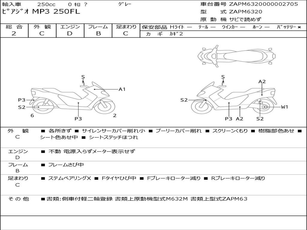| Номер рамы / VIN | ZAPM6320000002705 |