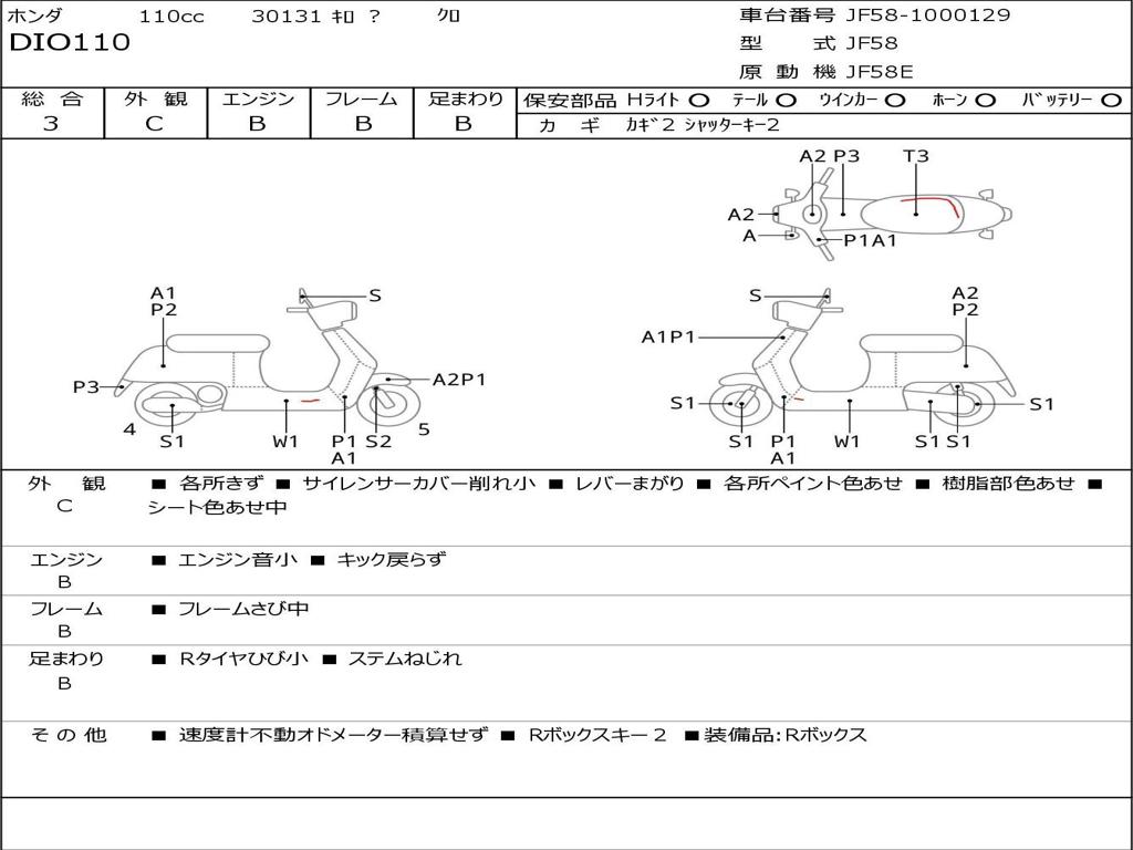 | Номер рамы / VIN | JF58-1000129 |