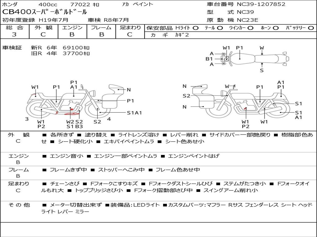 | Номер рамы / VIN | NC39-1207852 |