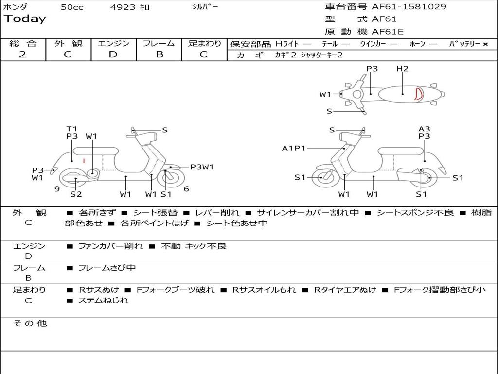 | Номер рамы / VIN | AF61-1581029 |