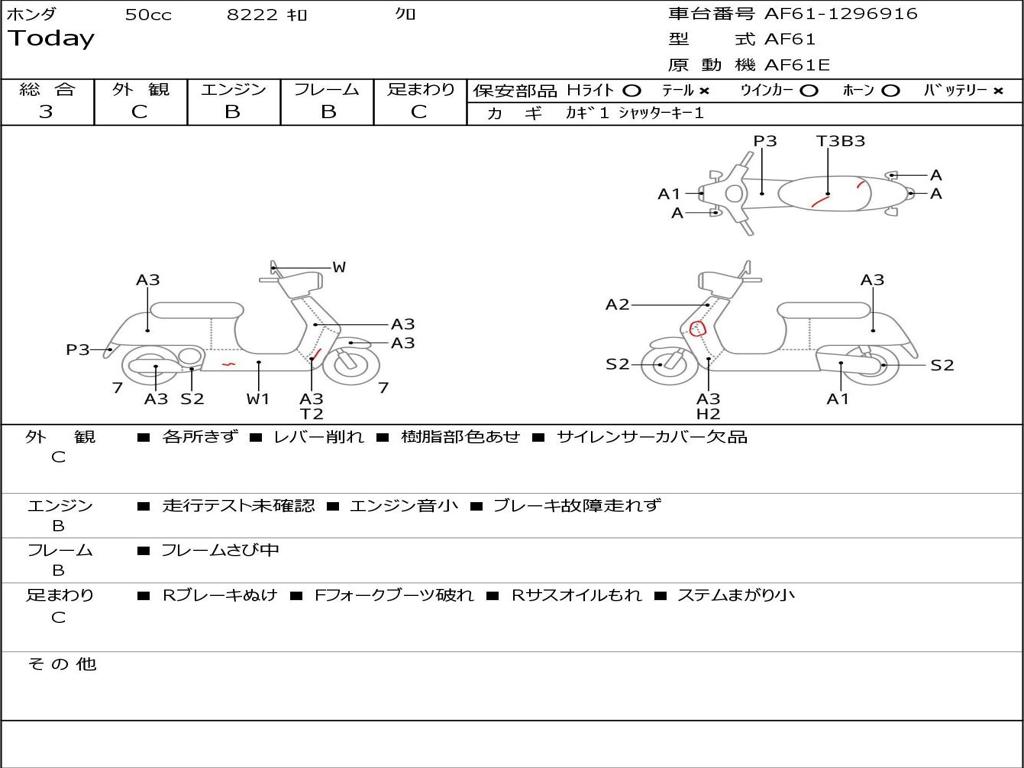 | Номер рамы / VIN | AF61-1296916 |