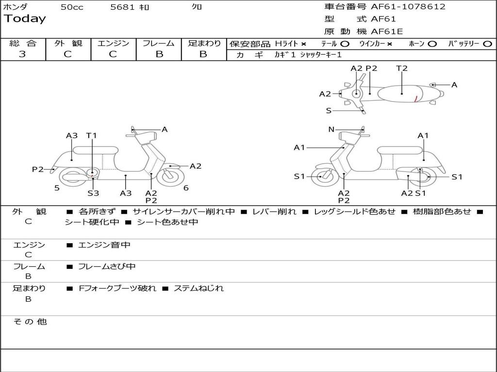 | Номер рамы / VIN | AF61-1078612 |
