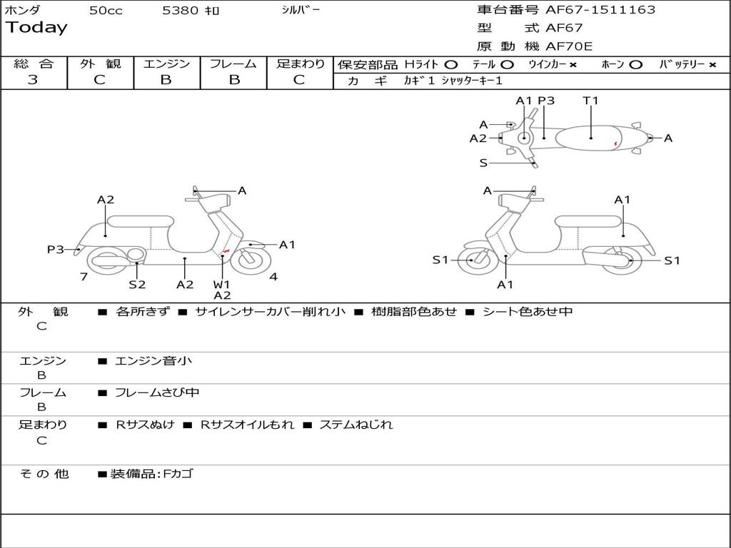 | Номер рамы / VIN | AF67-1511163 |