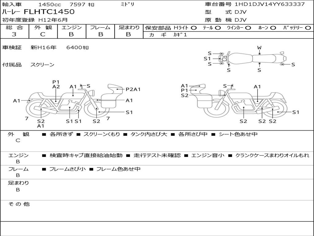 | Номер рамы / VIN | 1HD1DJV14YY633337 |