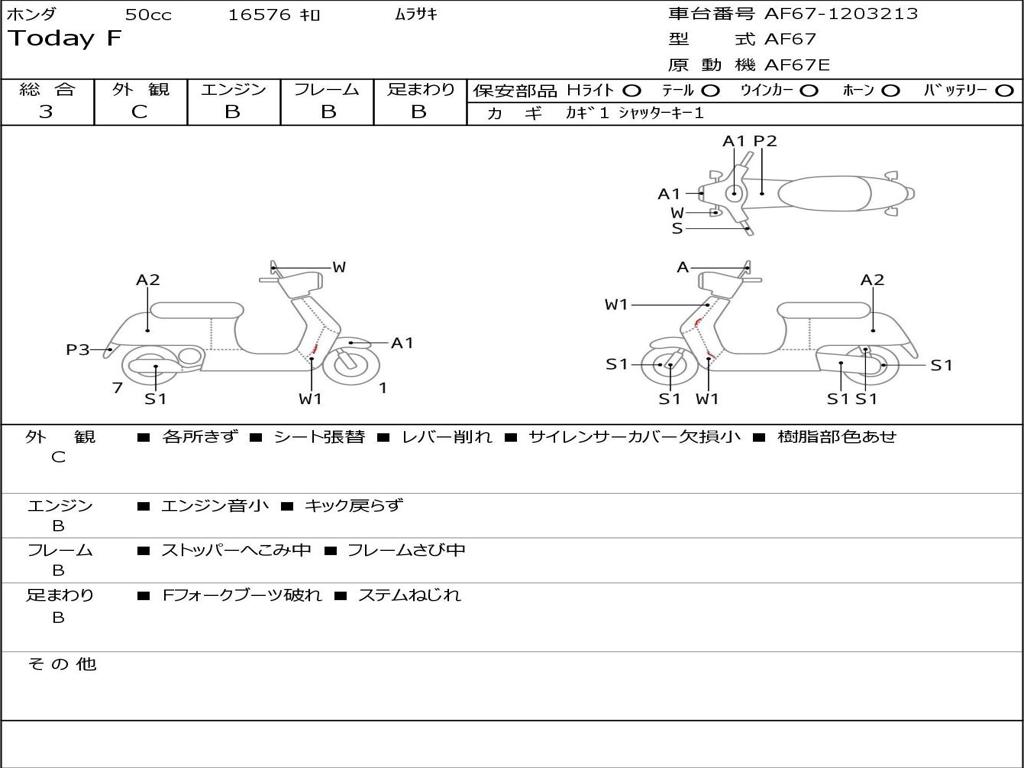| Номер рамы / VIN | AF67-1203213 |