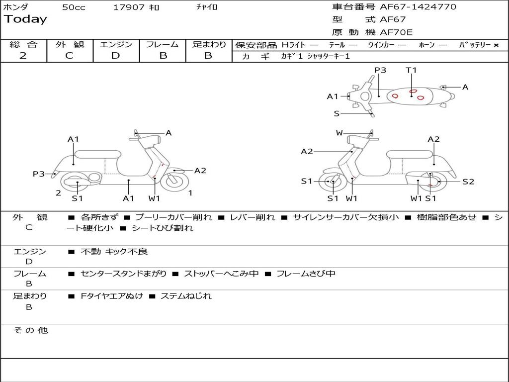 | Номер рамы / VIN | AF67-1424770 |