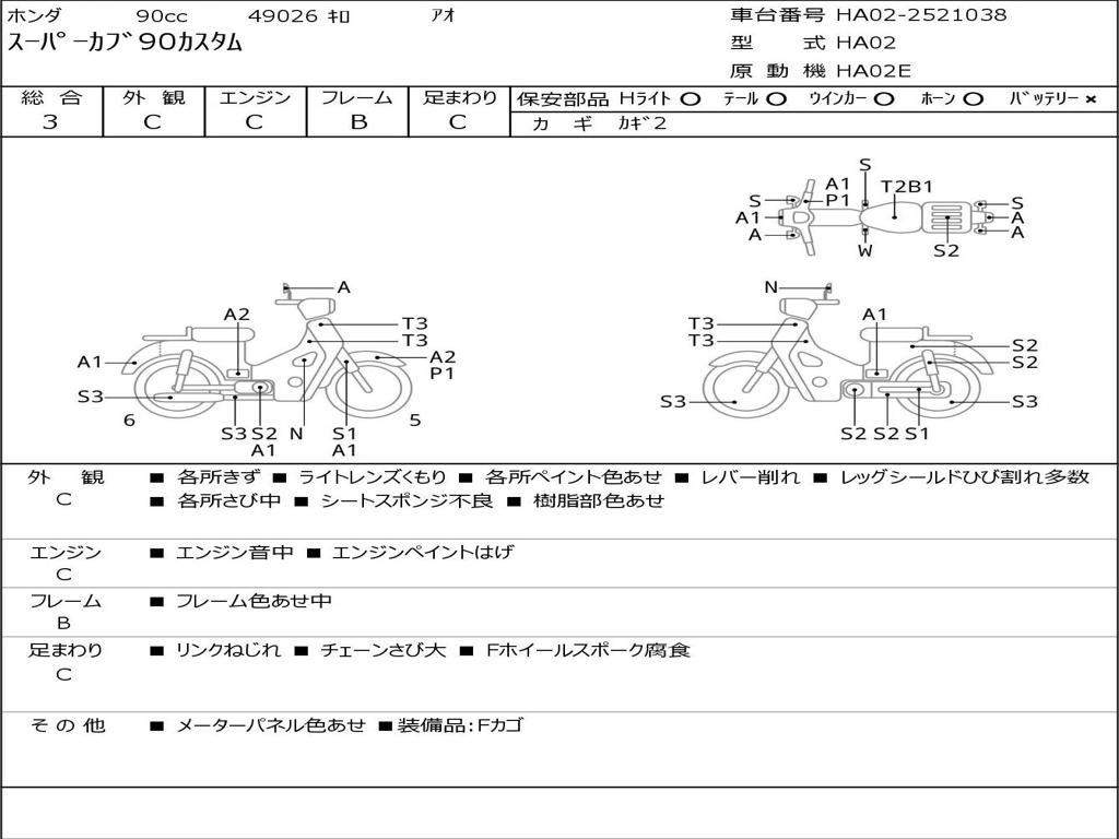 | Номер рамы / VIN | HA02-2521038 |