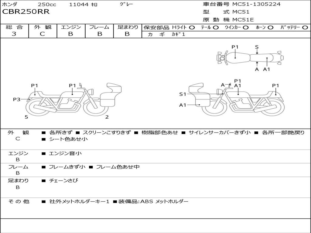 | Номер рамы / VIN | MC51-1305224 |