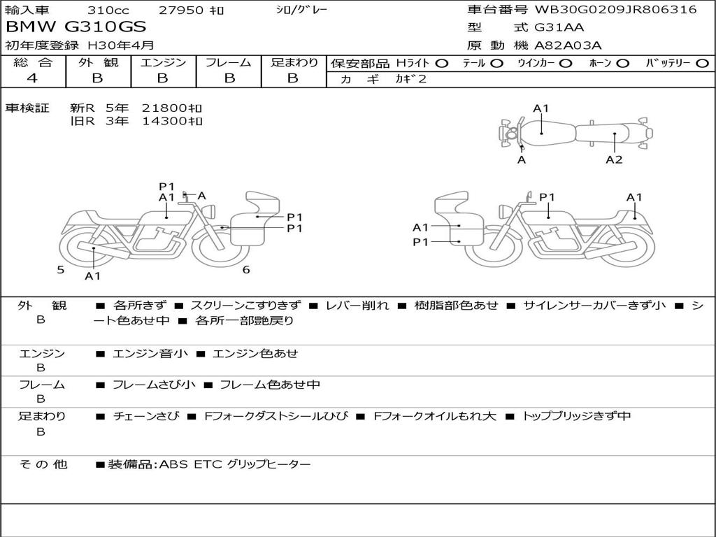 | Номер рамы / VIN | WB30G0209JR806316 |