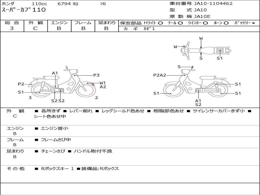 | Номер рамы / VIN | JA10-1104462 |