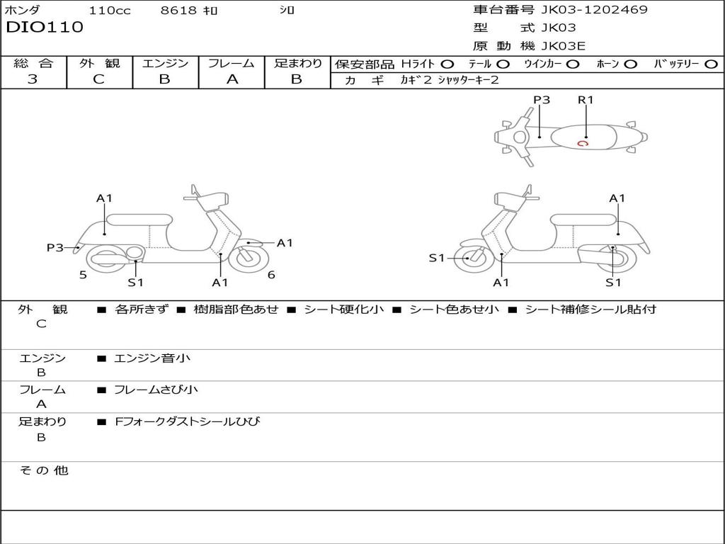 | Номер рамы / VIN | JK03-1202469 |
