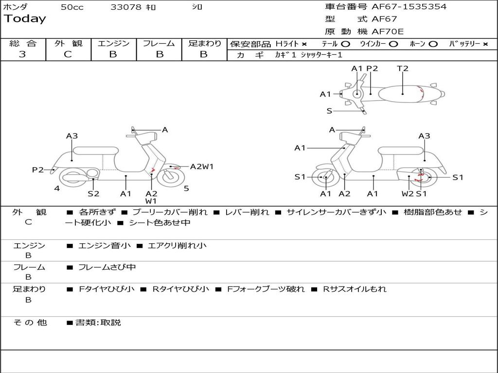 | Номер рамы / VIN | AF67-1535354 |