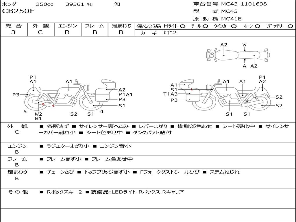 | Номер рамы / VIN | MC43-1101698 |