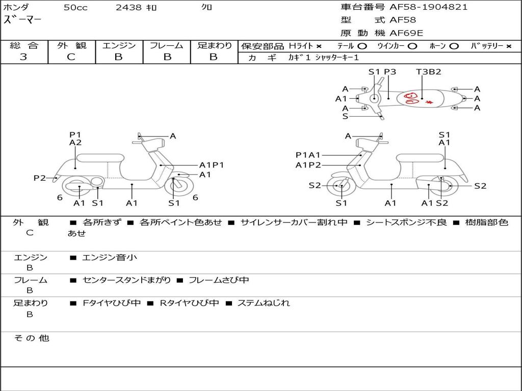 | Номер рамы / VIN | AF58-1904821 |