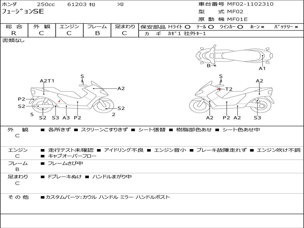 | Номер рамы / VIN | MF02-1102310 |
